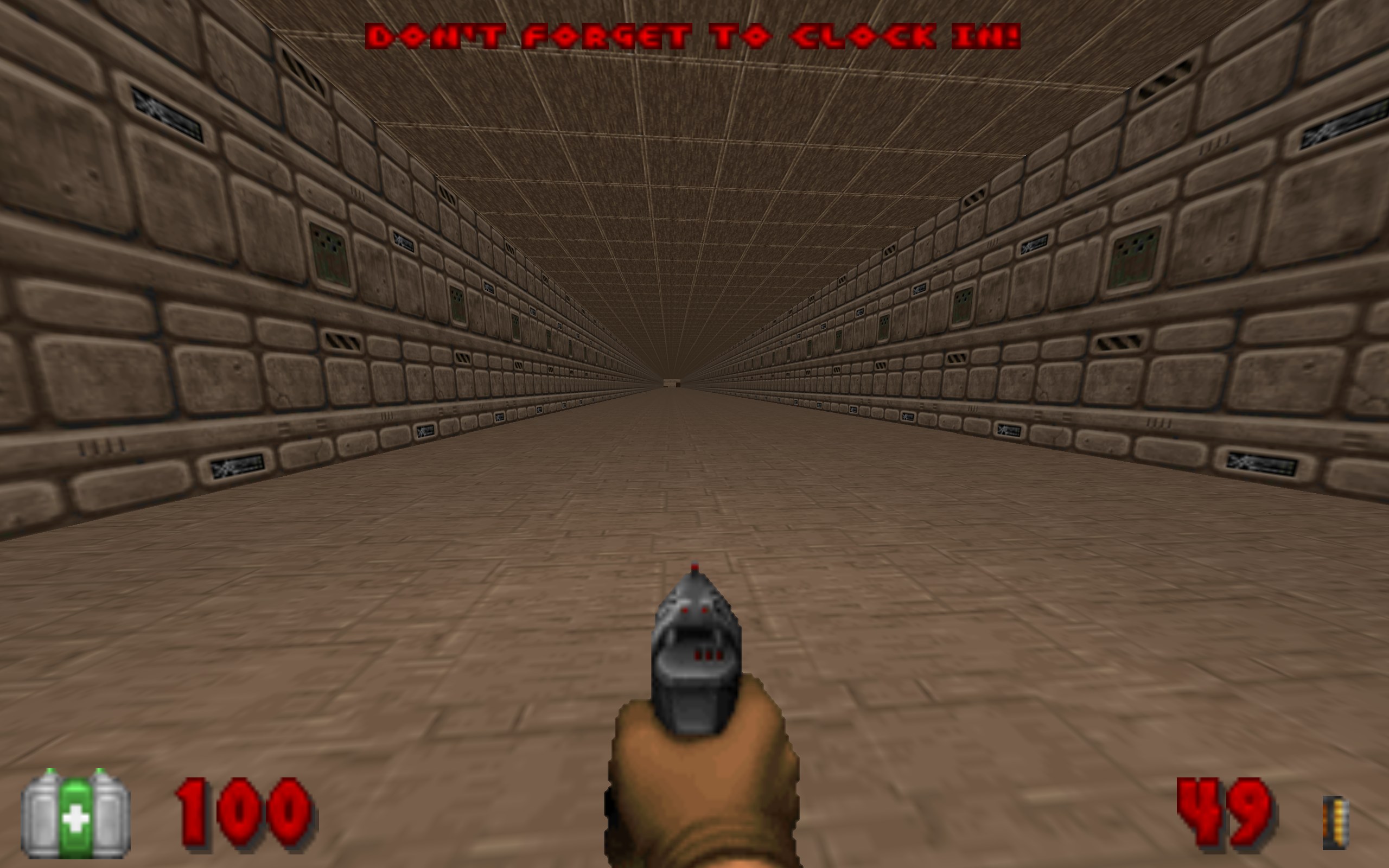 An abstract game poem based on my experiences in my minimum wage job in retail. Start your day at the self-checkouts and continue on with your miserable day! The game is made using the DOOM Engine with the tool Ultimate DOOM Builder. The game is one big, long level, built to try and showcase the monotony, repetition and boringness that you experience in these kinds of jobs. I also include dialogue based off of my own real experiences at my job (e.g. conversations with the customers the protagonist has). I'd say the game may take about 5-10 minutes to complete.